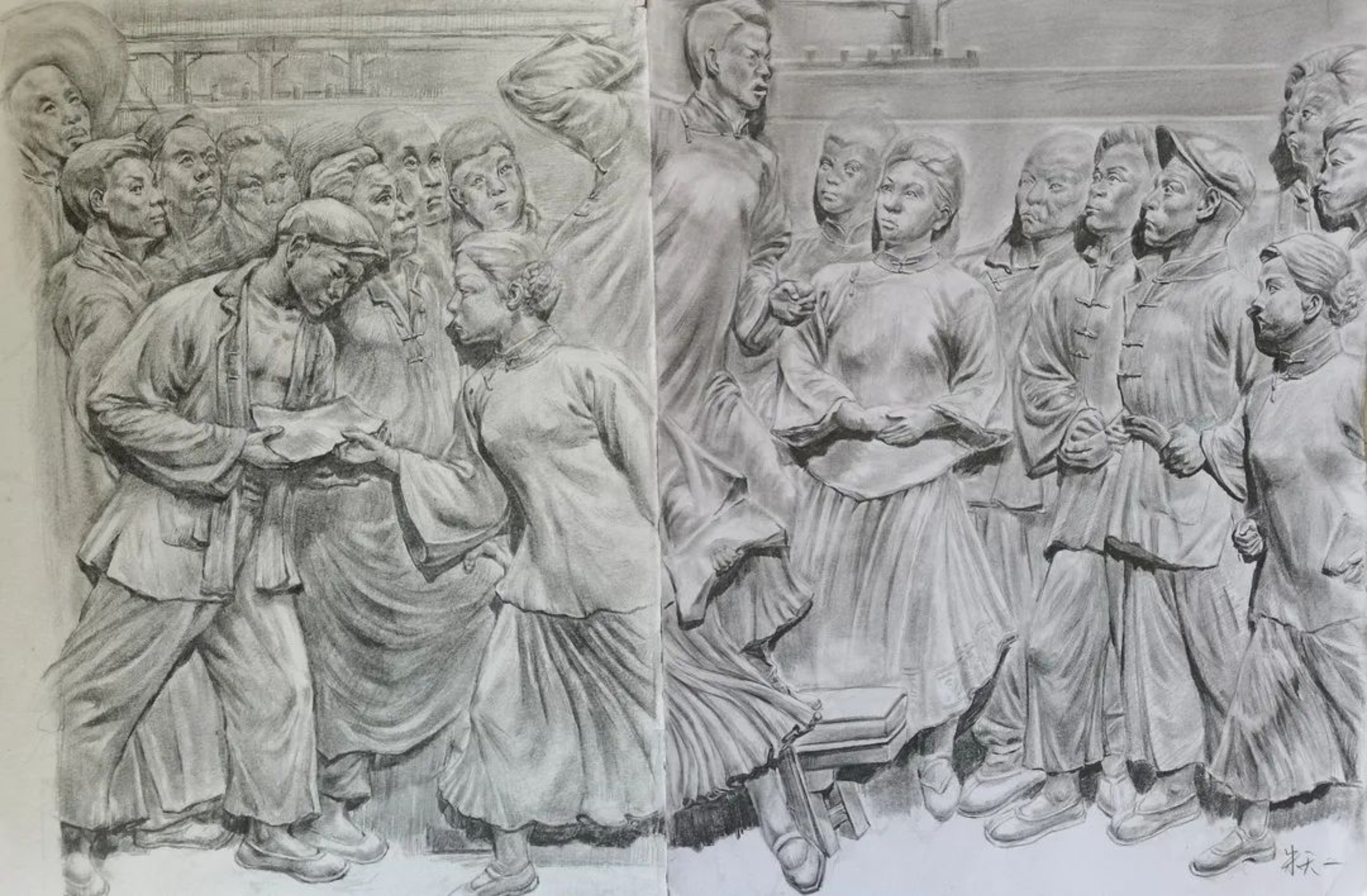 ◎《人民英雄纪念碑浮雕》/朱天一 数艺6班