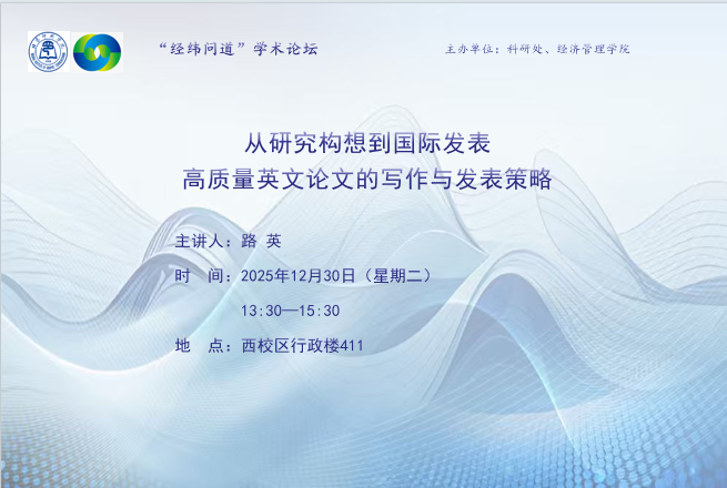 主题:从研究构想到国际发表:高质量英文论文的写作与发表策略