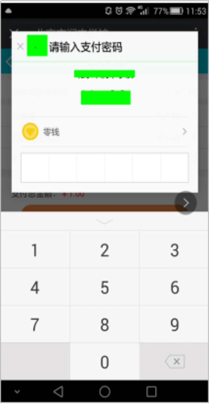 第五步:显示微信支付,点击“下一步”,输入微信支付密码,完成支付。
