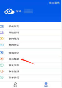 第四步:登录成功后,点击“我的”,可以绑定微信,下次可以使用微信登录。如果更换微信号,先点击微信解绑进行解绑。